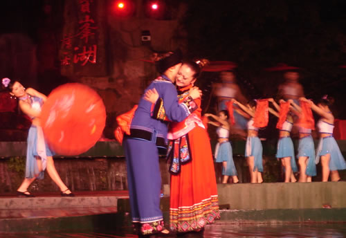 姑娘出嫁,為女人一生中最大的喜事,本應(yīng)充滿幸福、歡樂(lè)的氣氛。然而,舊時(shí)湘西、湘南、鄂西、川西(成都等地)、黔東(銅仁、凱里一帶)諸地,卻流行著一種與之完全相反情調(diào)的古老婚俗——“哭嫁”。也就是在姑娘“出閣”之前,不但新娘本人哭得很傷心,像淚人一般;而且,新娘的母親、姐妹以及姑媽、姨媽、舅媽及其他交往較多的女友,都要陪著新娘哭。湘西土家族哭嫁的風(fēng)俗尤為普遍、濃厚,不但哭嫁的時(shí)間較長(zhǎng)(少則十來(lái)天,多達(dá)個(gè)把月),而且哭嫁歌也保存得古樸、完整。 姑娘出嫁為什么要哭?哪有那么多的東西可哭?這是一種蘊(yùn)含甚為豐厚的人生禮俗,也是一種饒有興趣的婚俗事象。 俗話悅:“人不傷心不落淚!惫媚锍黾拗砸,是因?yàn)樵谂f式婚姻制度下,女孩(尤其是勞苦大眾家庭的女孩)總是作為犧牲品“拋”(賣)給夫家的,她們的身心受到極大傷害。因此,湘西等地的女孩在出嫁之前要哭泣,要呼號(hào),哭嫁歌就是感情發(fā)泄的最好表現(xiàn)方式。 哭嫁的源起 哭嫁的風(fēng)俗,不知道起源于什么時(shí)候。戰(zhàn)國(guó)時(shí)期,趙國(guó)的公主嫁到燕國(guó)去作王后,她的母親趙太后在臨別時(shí)"持其踵,為之泣,祝曰,必勿使返。"大約就是后來(lái)長(zhǎng)盛不衰的哭嫁風(fēng)俗的濫觴了。 這種風(fēng)俗,直至清末還盛行于四川農(nóng)村中,隨地區(qū)變化而大同小異。解放前,聽(tīng)老人們說(shuō),早些時(shí)候,沒(méi)有嫁而不哭的人家。如果出現(xiàn)嫁而不哭的姑娘,也會(huì)被鄰里看作沒(méi)有教養(yǎng)的人,傳為笑柄;相傳有出嫁姑娘不哭而遭母親責(zé)打的事,這位母親當(dāng)然算得上是入流導(dǎo)演了。 舊時(shí)宣講故事中,有花轎臨門,父親強(qiáng)令哭《迎風(fēng)罵媒歌》的情節(jié),可知哭嫁是有歌詞的,帶有表演性質(zhì),原是用來(lái)渲染氣氛,以悲襯喜;不過(guò),因?yàn)榛橐鍪前k的,真哭真罵的也不會(huì)少。 抗日戰(zhàn)爭(zhēng)后期,風(fēng)氣較開(kāi),哭嫁之風(fēng)已不盛行,而老人們卻還在津津樂(lè)道,哭的方式是,從婚期前一個(gè)月的首日起,入黃昏,姑娘訴哭約一個(gè)小時(shí),其聲嗚嗚。十天以后,她的母親加入"陪哭";又十天以后,她的祖母加入陪哭。這家沒(méi)有諸姑姊妹,人們說(shuō),如果有的話,也應(yīng)當(dāng)加入陪哭行列的。 哭嫁在川西叫"坐堂"。清代吉道人《味蔗軒隨筆·坐堂詞》云:"婚姻之禮,各省風(fēng)俗不同。然酌禮準(zhǔn)情,各省亦大同小異。凡男家娶婦先賦之詩(shī),謂之'催妝';女家親串頌女之詞,謂之'坐堂'。坐堂者,女當(dāng)喜期將近之先數(shù)夕,其諸姑伯姊,置酒為女祖餞,各述吉祥之詞,以為頌美,女則申己之意以答。女左右更有少女,則隨而嫻習(xí)者也。其詞要多鄙俚,然有音韻凄清,風(fēng)格遒勁,如古歌古謠者。羅江明府蔡,微服巡查鄉(xiāng)里,一日行至某處,值有女子歸,諸娣姒咸以諛詞頌女,女申意以答。忽風(fēng)吹句入耳,詞曰:'鳳凰落在桌子上,哪個(gè)女兒肯離娘'。一字一轉(zhuǎn),音韻凄其,誰(shuí)謂天籟之鳴,不在愚夫愚婦耶!"云云。吉道人姓周名際唐,成都人。吉道人記得明明白白,可惜他只記了一句哭嫁詞,難窺全貌。好在舊時(shí)坊間叢刻中有《訓(xùn)女哭嫁》一種,可見(jiàn)一斑。這本小書(shū)的目錄有《閨聲哭》、《娘訓(xùn)女》、《嫂哭妹》、《哭爹媽》、《哭哥嫂》、《花轎到屋哭》、《哭叔爺》、《哭兄弟》、《哭外公外婆》、《哭舅爺》、《拜香火哭》等等,編次有點(diǎn)凌亂,似乎隨手所記,未經(jīng)文人之手。遙想《詩(shī)》十五國(guó)風(fēng)未刪之時(shí),大約也不過(guò)如此吧! 閨聲哭 娘聽(tīng)后園鳥(niǎo)雀驚,要聽(tīng)房中女兒聲。 我娘當(dāng)門苦葛藤,手攀苦葛訴苦情。 我娘苦情苦過(guò)了,女兒苦情才起根。 ............ 桔子開(kāi)花葉子青,陽(yáng)雀開(kāi)聲我開(kāi)聲。 新打銅盆才裝水,新打剪刀兩面青。 娘不開(kāi)口我開(kāi)口,娘不開(kāi)聲我開(kāi)聲。 當(dāng)門一根木蓮樹(shù),目連樹(shù)上掛卷經(jīng)。 一本經(jīng)書(shū)背完了,未見(jiàn)我娘來(lái)開(kāi)聲。 虧了我娘睡得穩(wěn),爹媽眼淚貴如金。 哭爹媽 月亮彎彎照華堂,女兒開(kāi)言叫爹娘。 父母養(yǎng)兒空指望,如似南柯夢(mèng)一場(chǎng)。 一尺五寸把兒養(yǎng),移干就濕苦非常。 ............ 勞心費(fèi)力成虛恍,枉自爹娘苦一場(chǎng)。 哭兄弟 黑漆茶盤烏木頭,姐姐離娘弟不留。 留到姐姐吃你飯,留到姐姐穿你衣。 兄弟當(dāng)家掙家忙,嫁了姐姐買地方。 上頭買齊潼川府,下頭買齊遂寧鄉(xiāng)。 ............ 這個(gè)本子所記是川北的歌詞,以前所見(jiàn)的是川南,吉道人所記的是川西,川東,大約也不會(huì)大異的。遺憾的是,該書(shū)所記哭嫁詞雖有"只怨媒人莫良心"等語(yǔ),卻沒(méi)有列出"罵媒專目,大約是怕媒人太難堪了吧! 其實(shí),罵媒是哭嫁中必不可少的節(jié)目,也是最具反抗色彩的哭嫁歌詞。舊社會(huì),婦女無(wú)婚姻自由可言,由于"三從四德"的束縛,平時(shí)對(duì)于自己的終身大事幾乎不能置一詞,全由媒人和父母擺布;因此,這登花轎之前的"罵媒",便是難得的發(fā)泄機(jī)會(huì)。這早已反映在戲曲和民間說(shuō)唱等藝術(shù)之中。 以前,川劇《柳蔭記》有《英臺(tái)罵