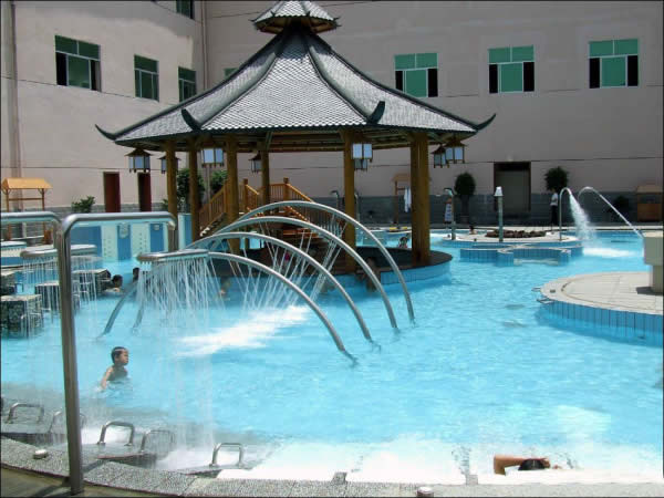 慈利縣萬(wàn)福溫泉 萬(wàn)福溫泉以福為文化為背景,建有四星級(jí)溫泉酒店(萬(wàn)福樓),有140多間標(biāo)準(zhǔn)雙人房、單人房、豪華套房及董事套房;中、大型會(huì)議室、多功能宴會(huì)廳3間;以福文化為基礎(chǔ),在萬(wàn)福溫泉的朝陽(yáng)地帶建設(shè)40多個(gè)功能各異、大小不一、錯(cuò)落有秩的室內(nèi)SPA池、露天溫泉池,另有貴賓休息廳、香薰屋、山頂溫泉沖浪、空中溫泉漂流等靜、動(dòng)態(tài)溫泉養(yǎng)生娛樂項(xiàng)目,把福文化溶入到自然的溫泉沐浴中,使廣大游客在福文化的環(huán)繞中享受大自然獨(dú)特的恩賜;餐飲部擁有300多人的用餐大廳及包房,推出湘菜系列、突出地方名菜、土家風(fēng)味,集百家之長(zhǎng),創(chuàng)獨(dú)特風(fēng)味。另有KTV、桑拿、保健、美容、棋牌、臺(tái)球、健身房、購(gòu)物中心等娛樂及其它配套設(shè)施。整個(gè)建筑別具一格,氣勢(shì)恢弘,功能完善,堪稱張家界溫泉旅游的又一大奇觀。