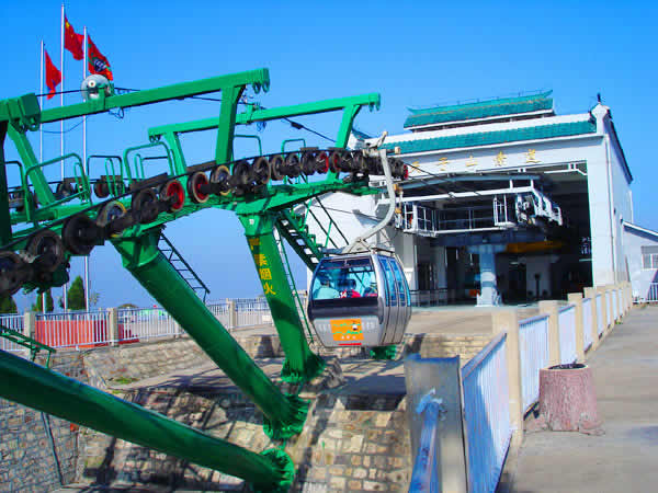 湖南武陵源索道有限公司成立于1995年12月7日,武陵源區(qū)人民政府和香港安達國際度假樂園(張家界)有限公司簽約,是由香港安達國際有限公司投資的外商獨資企業(yè)。1996年6月動工興建天子山索道,1997年5月正式對外營運。天子山索道是單線循環(huán)式脫掛抱索器客運索道,全部設備自奧地利Doppelmayr公司進口。設計水平線1960m,斜線長2084m,兩端站高差692m。配單線自動循環(huán)車廂41個,每車廂載6人,運速5m/s,每小時單向運量900人。索道動力電,采用雙電源;配備有應急備用柴油機,用于停電或發(fā)生設備事故時緊急疏散游客。