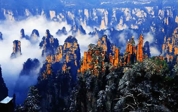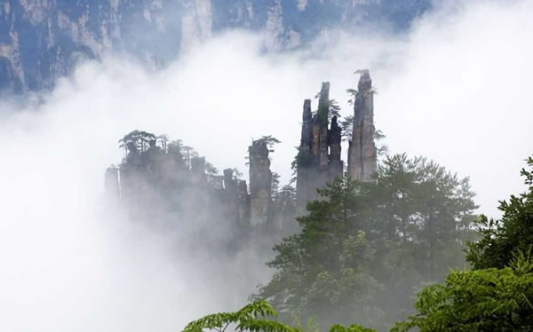| 御筆峰坐落于天子山自然保護(hù)區(qū),是天子山風(fēng)景區(qū)的最佳景點(diǎn)之一, 峰高100余米,數(shù)峰參差并列,據(jù)說(shuō)是向王天子兵敗時(shí)丟棄的御筆所化成的山峰。歸類于石家檐游覽線。山谷中數(shù)十座錯(cuò)落有致的秀峰突起,遙沖藍(lán)天,靠右的石峰像倒插的御筆, 靠左的石峰似擱筆的“江山”。此景變化萬(wàn)千,日照霞染生輝,云霧涌動(dòng)時(shí)隱時(shí)現(xiàn),春月透過花叢,五層峰巒相迭。