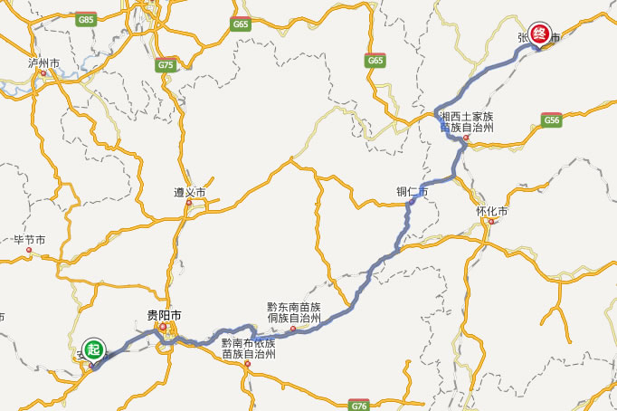 安順去張家界自駕車自助游線路圖全程高速):