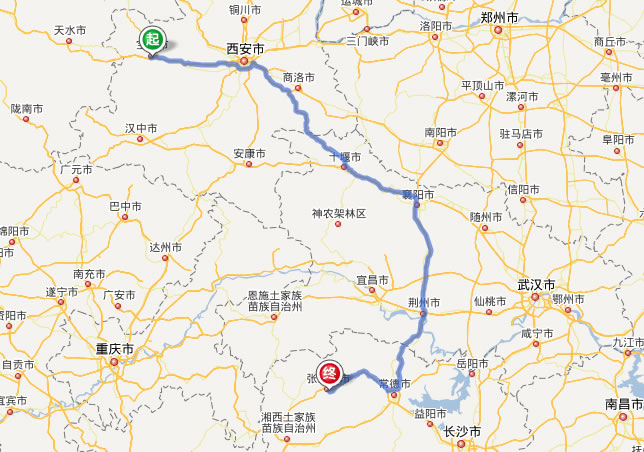 寶雞去張家界自駕車自助游線路圖全程高速):