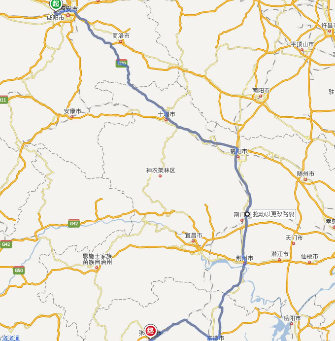 左右,沿途經過咸陽——十堰——襄陽——荊門——荊州——澧縣——石門縣——慈利縣——張家界市。