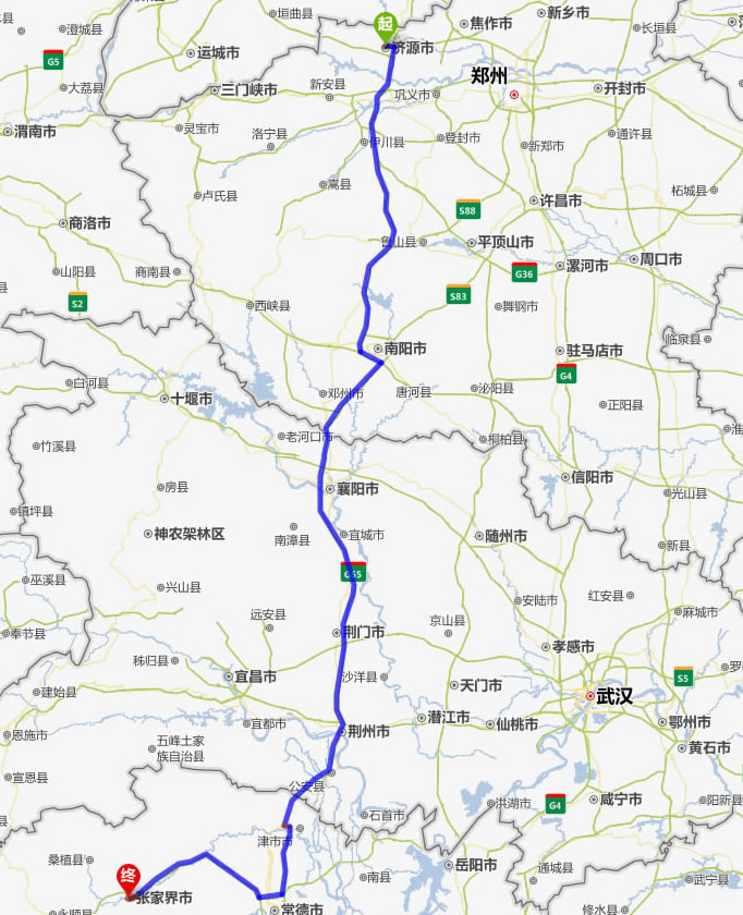 濟(jì)源去張家界自駕車自助游線路圖全程高速):