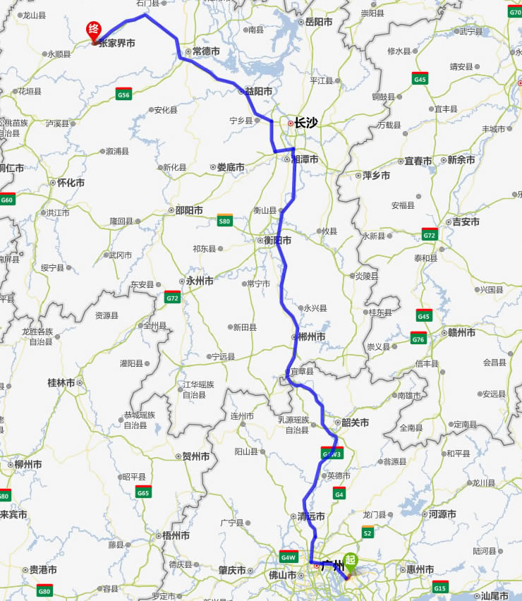 紹興去張家界自駕車自助游線路圖全程高速):