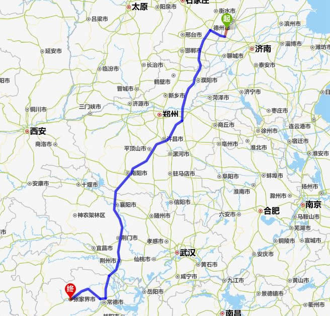 武城縣去張家界自駕車自助游線路圖全程高速):