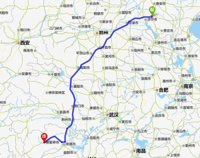 曲阜去張家界自駕車自助游線路圖全程高速):
