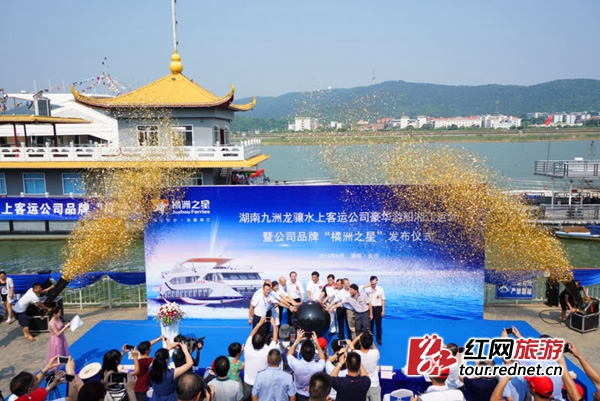 湖南九洲龍?bào)J公司豪華游船湘江運(yùn)營暨公司品牌“橘洲之星”發(fā)布儀式在長沙橘子洲風(fēng)景區(qū)舉行。