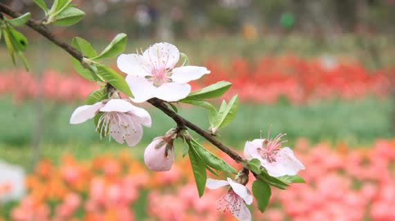 園內的桃花開得正艷,郁金香和桃花在一起的地方更是美上加美,成為游客拍攝最多的地方。由于游客眾多,經常有人踏入花田中拍照,這可忙壞了現成巡邏的工作人員,筆者在此呼吁大家愛花更護花,文明欣賞。