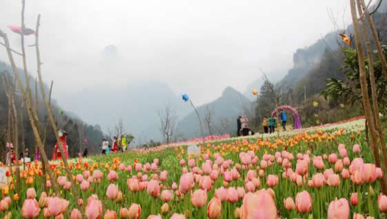 感受三月煙雨張家界 游客喜賞老道灣景區(qū)美麗郁金香